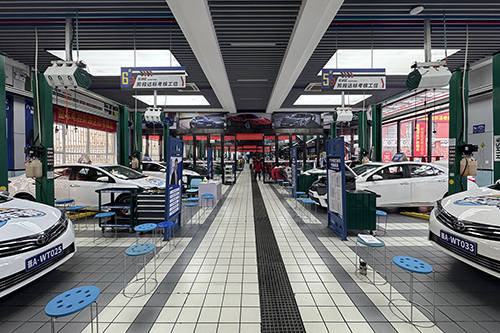 学校拥有的实训条件,与宁德时代共建产教融合实训基地,配备中、美、德、日、韩五大车系100余部实训车辆,涵盖比亚迪、特斯拉、大众等热门新能源车型。同时,引入了电池检验测试仪器、电控系统调试设备、智能网联模拟实训平台等专业设施,可满足三电系统拆解、故障诊断、程序调试等全流程实操需求。实训设备定期根据行业技术迭代更新,与公司制作标准保持同步,让学子在校园内就能接触真实作业场景,实现所学即所用。