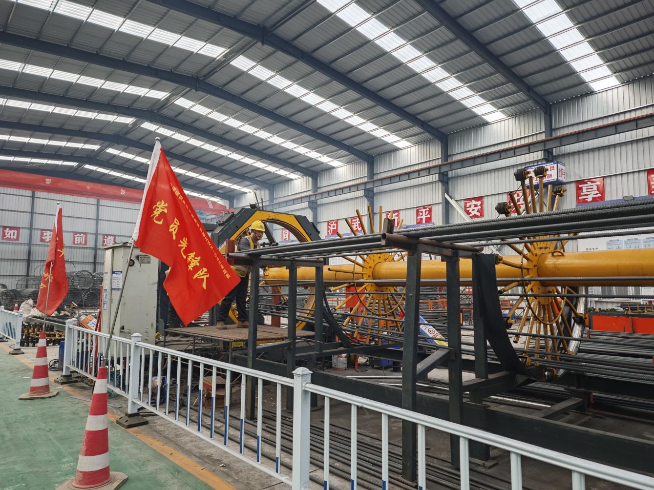 施工现场焊花飞溅、机械轰鸣,展现出一派热火朝天的建设景象。项目党支部坚持“一路同行,两路先锋”理念,将党建优势转化为攻坚克难的强大动力,为工程建设注入强劲的“红色动能”。