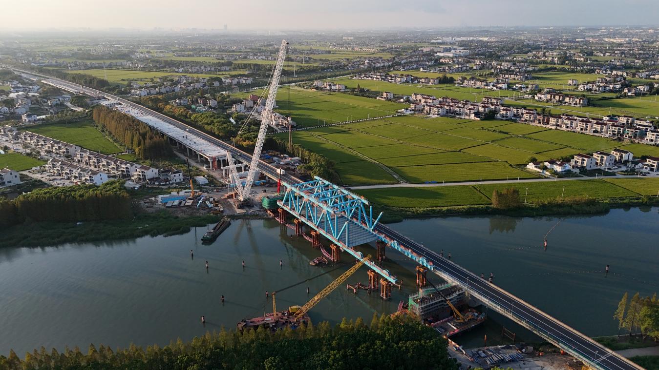 在苏南水网纵横的望虞河畔,中化学交通建设集团沪武高速公路HWK-CS5标段建设正全速推进。